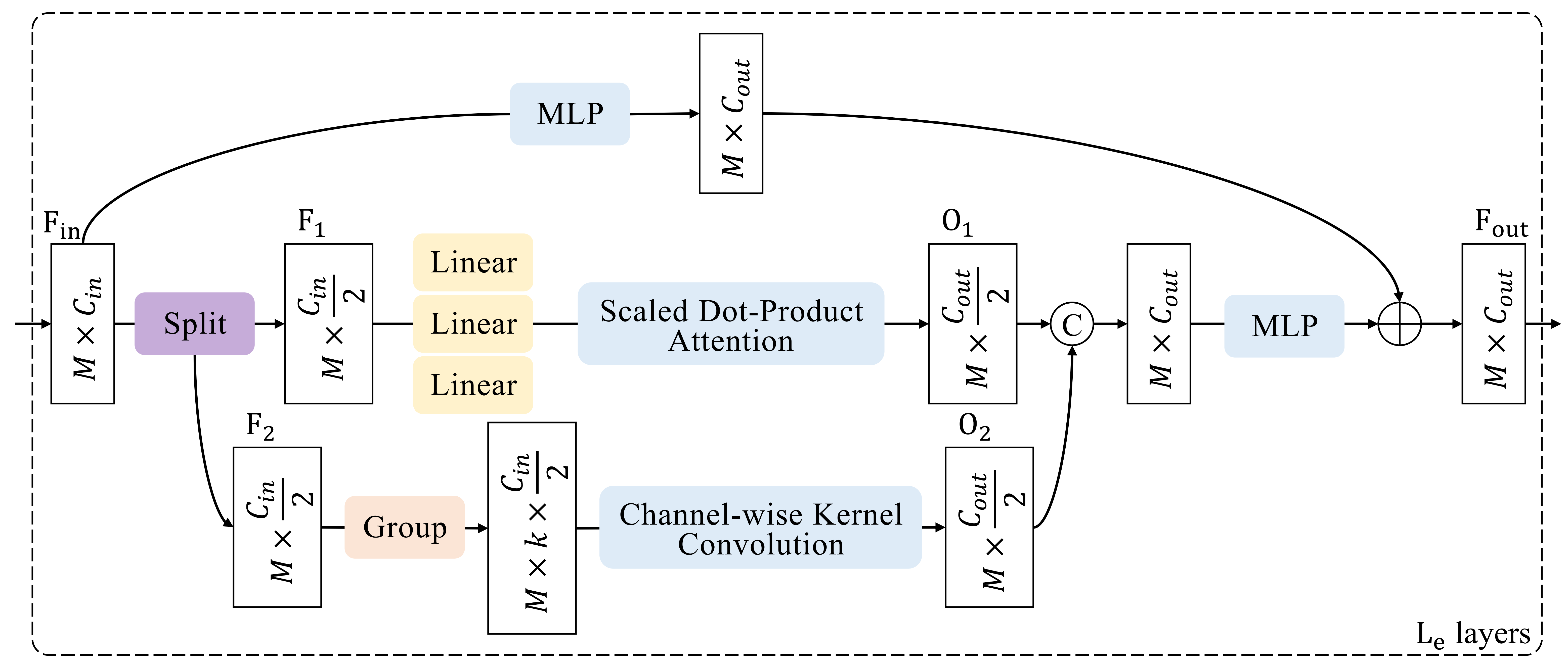 The structure of the point representation encoder. In the point representation encoder, we introduce the channel-wise kernel convolution into the self-attention mechanism to efficiently extract the local structure feature. |
